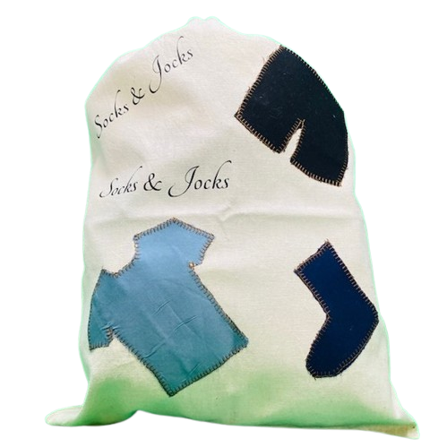 Handmade fabric drawstring bags in a eclectic assortment of designs & styles with coordinating drawstrings.